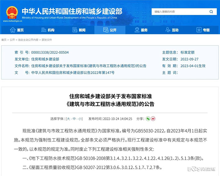 不(bù)久前,住建部發文(wén)批準□标準《建築與市(shì)政工(gōng)程防水(shuǐ)通(t£ōng)用(yòng)規範》,編号為(wèi)gb 55030-2022,自(zì)2023年(nián)4月(yuè)1日(rì)起實施。該規範為(wèi)↑強制(zhì)性工(gōng)程建設規範,全部條文(wén)必須嚴格執行(xíng)。現(xiàn)行(xíng)∏工(gōng)程建設标準中有(yǒu)關規定與本規範不(bù)一(yī)緻的(de),以本規範的(de)規定為(wèi)準。