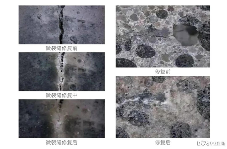 自(zì)修複混凝土(tǔ)是(shì)指摻入混凝土(tǔ)自(zì)修複防水(shuǐ)密實劑的(d e)混凝土(tǔ),其在混凝土(tǔ)內(nèi)部形成自(zì)修複系統,且材料中的(de)活性成分(fēn)處于密閉的(de¥)混凝土(tǔ)中長(cháng)期處于休眠狀态,當混凝土(tǔ)産生(shēng)微(wēi)裂縫時(shí),活性修複材料₽遇水(shuǐ)被二次激活後通(tōng)過化(huà)學反應形成石灰石及方解石,将混凝土(tǔ)中的(d₹e)微(wēi)裂縫填充和(hé)堵塞,使混凝土(tǔ)微(wēi)裂縫達到(dào)自(zì)修複,提高(gāo)混凝土(tǔ)防¥水(shuǐ)性、密實性及耐久性。