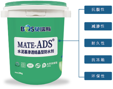 MATE-ADV混凝土(tǔ)自(zì)修複防水(shuǐ)密實劑是(shì)一(yī)種帶有(yǒu)自(zì)修複功能(néng)的(de)特種外(wài)&加劑,通(tōng)過改性處理(lǐ)後複合而成的(de)無機(jī)水(shuǐ)溶液。摻入混凝土(tǔ)中,具有(yǒu)極強的(de)滲透擴散能(néng)力,可(kě)滲≠入膠凝材料分(fēn)子(zǐ)內(nèi)部反應生(shēng)成不(bù)溶于水(shuǐ)的(de)枝狀結晶體(tǐ),填充混凝土(tǔ)中的(de©)毛細孔隙,修複混凝土(tǔ)微(wēi)裂縫,降低(dī)混凝土(tǔ)中的(de)堿性物(wù)質生(shēng)成,并可(kě)改善混凝土( tǔ)物(wù)理(lǐ)性能(néng),提高(gāo)混凝土(tǔ)抗滲、抗壓、抗裂等性能(néng),滿足規範中對(duì)防水(shuǐ)混凝土(tǔ)耐久性的(de )要(yào)求。