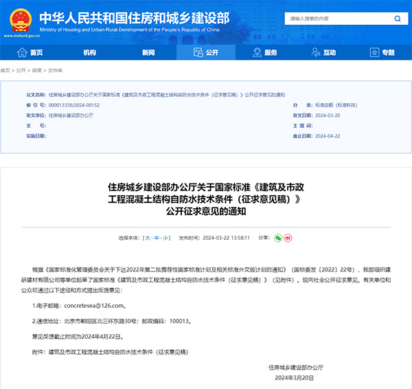 住建部新國(guó)标:《建築及市(shì)政工(gōng)程混凝土(tǔ)結構自(zì)防水(shuǐ)技(jì)術(shù)條件(jiàn)》發布在即
