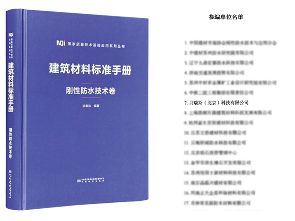 近(jìn)日(rì),由中國(guó)質量标準和(hé)中國(guó)标準出版、沈春林(lín)教授編著,貝瑞斯↕參編的(de)《建築材料标準手冊(剛性防水(shuǐ)技(jì)術(shù)卷)》正式發布實施,公司總經理(lǐ)杜志(zhì)全受聘常務副主編↔。