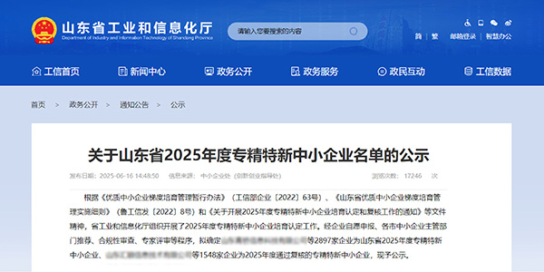 2025年(nián)6月(yuè)21日(rì),山(shān)東(dōng)貝瑞斯防水(shuǐ)科(kē)技(jì)有(yǒu)限公司成功通(tōng)過山(<shān)東(dōng)省“專精特新”中小(xiǎo)企業(yè)認定。