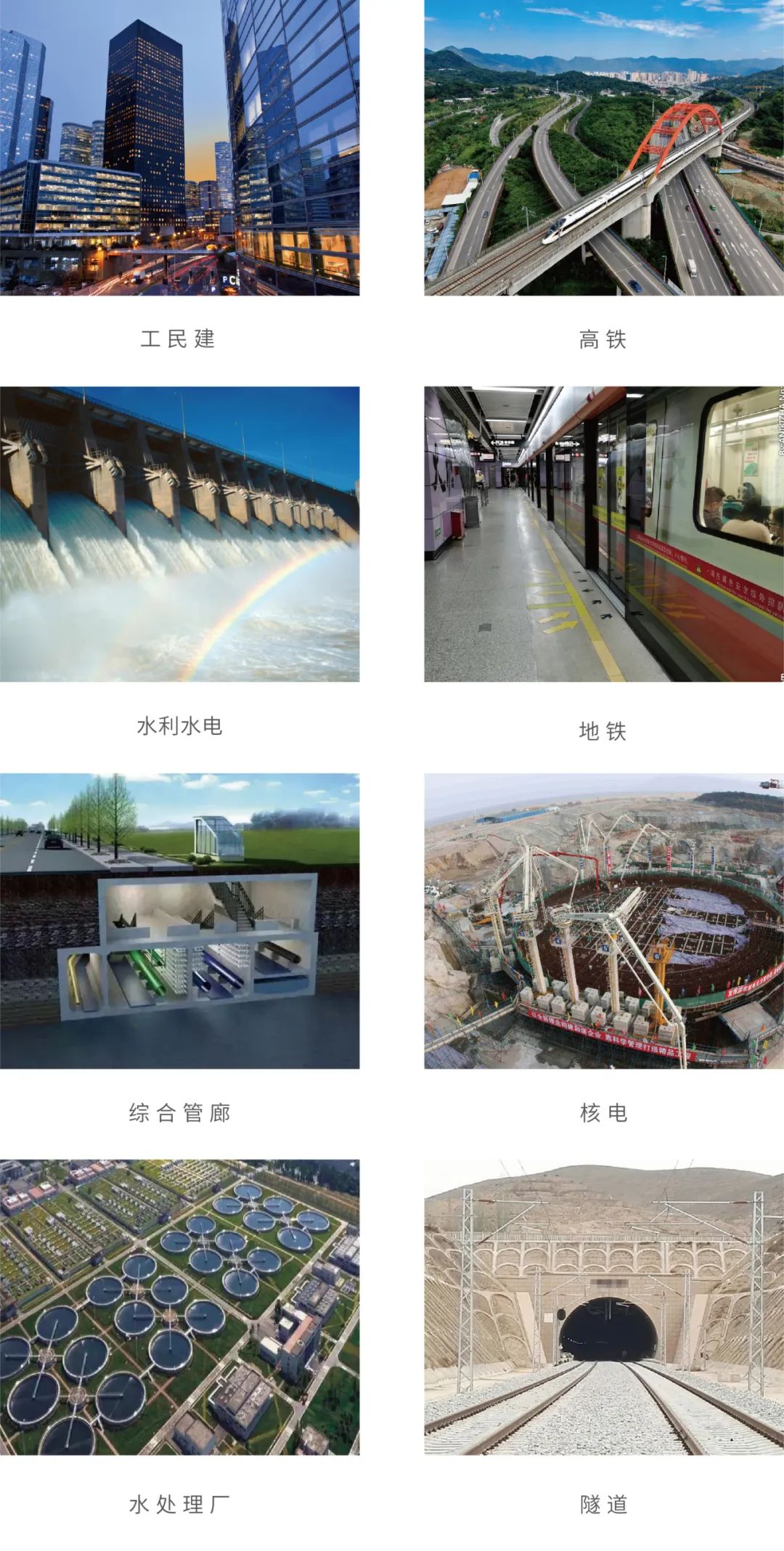 貝瑞斯科(kē)技(jì)mate系列産品廣泛應用(yòng)于工(gōng)民(mín)建、水(shuǐ)利水(shuǐ)電(diàn)、高(gāo)鐵(tiě)、綜合管₽廊、核電(diàn)、地(dì)鐵(tiě)、水(shuǐ)處理(lǐ)廠(chǎng)、隧道(dào)等防水(shuǐ)防護工(gōng)程。