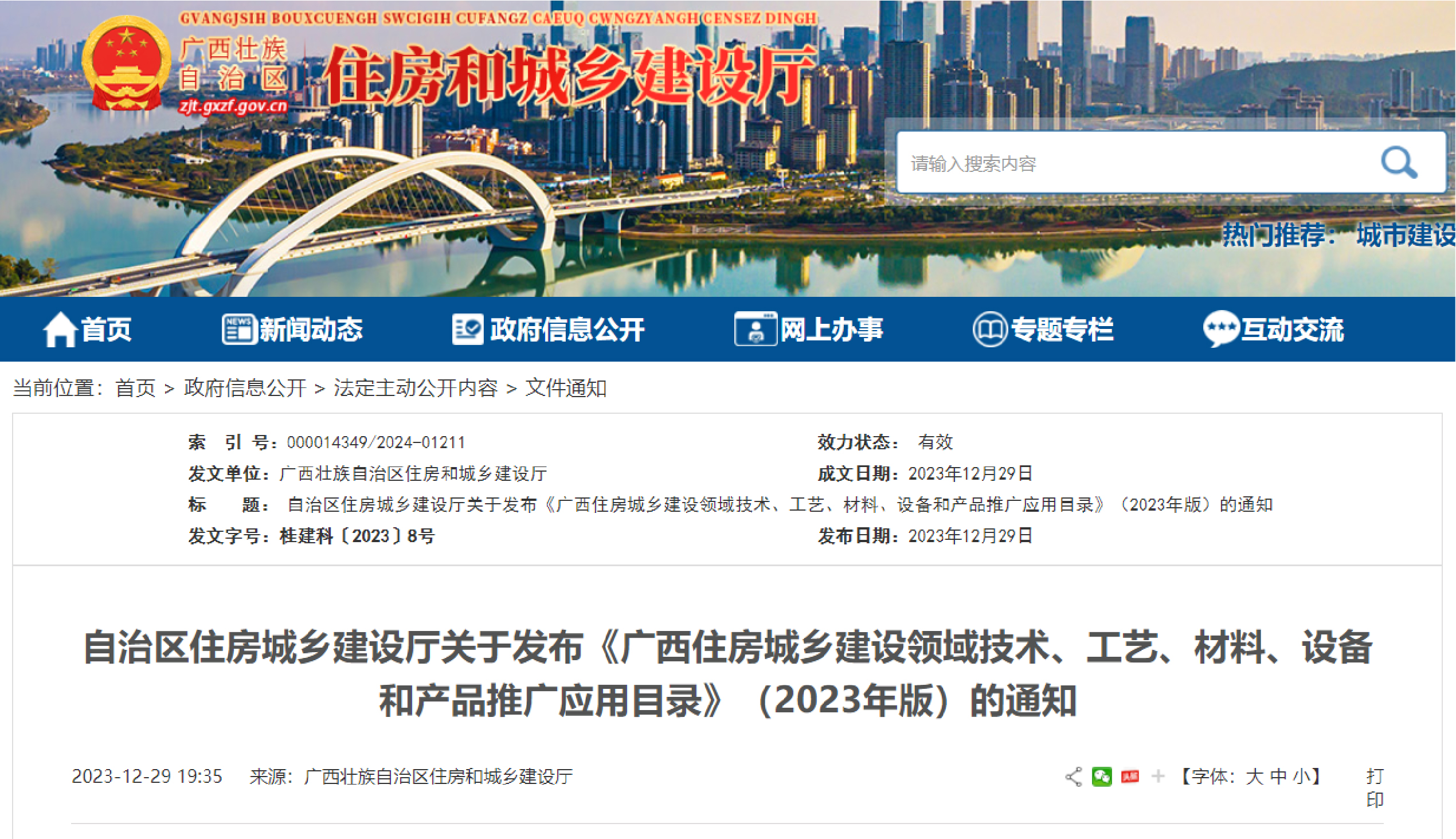 為(wèi)加快(kuài)廣西(xī)地(dì)區(qū)建設領域新技(jì)術(shù)的(de)發展和(hé)應用(yòng),推進綠(lǜ)色建築高(gāo)♠質量發展,廣西(xī)住建廳近(jìn)日(rì)組織編制(zhì)了(le)《廣西(xī)住房(fáng)城(chéng)鄉(xi÷āng)建設領域技(jì)術(shù)、工(gōng)藝、材料、設備和(hé)産品推廣應用(yòng)目錄》(2023 年(nián)版)。